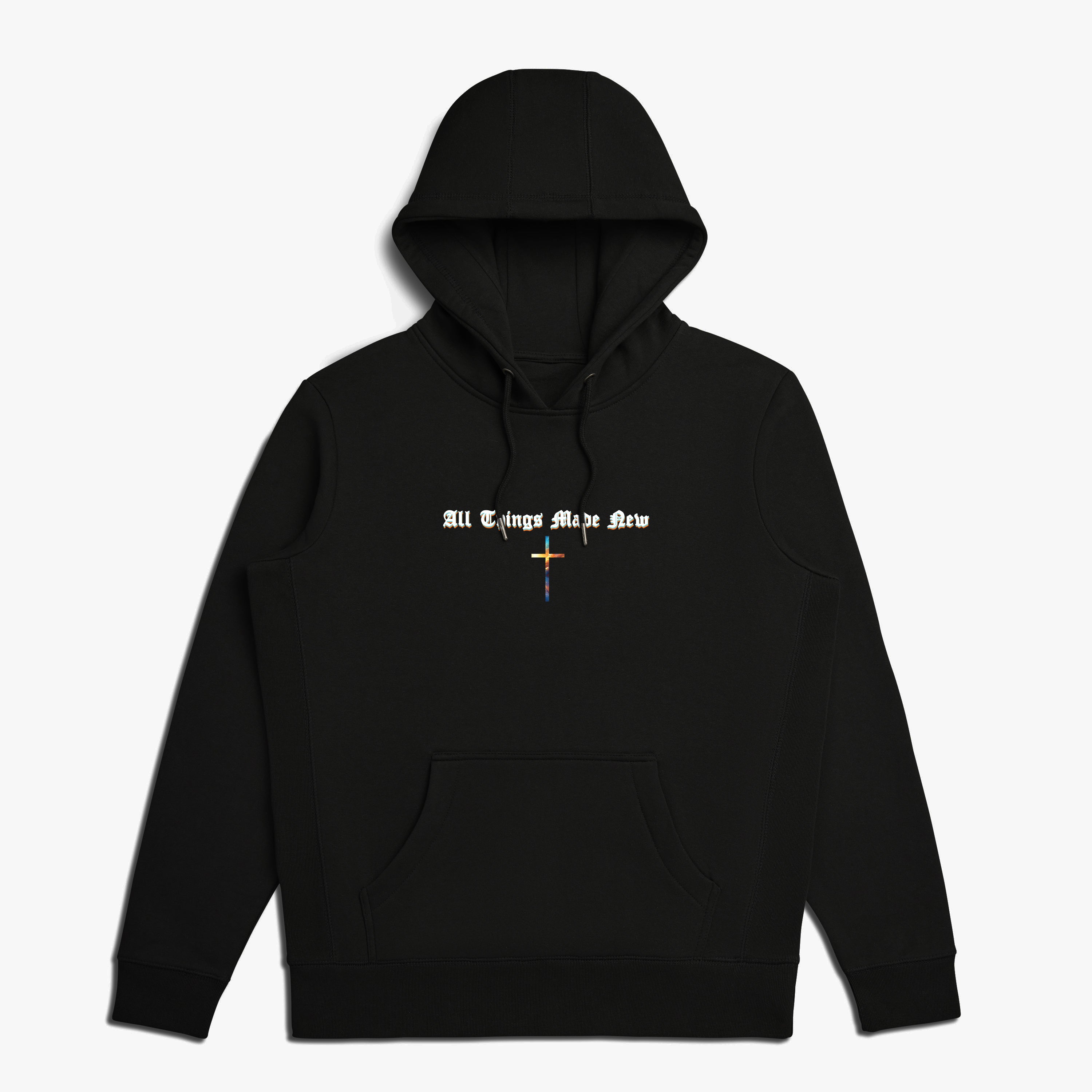 Revelation 21 is the newest edition graphic hoodie that is inspired by a dream Jasmine had of being in heaven. The back of the hoodie depicts an AI inspired interpretation of the Kingdom along with the scripture that describes Jasmine's experience of heaven. All Things Made New is placed on the front along with a cross that gives reverence to the King of Kings.
